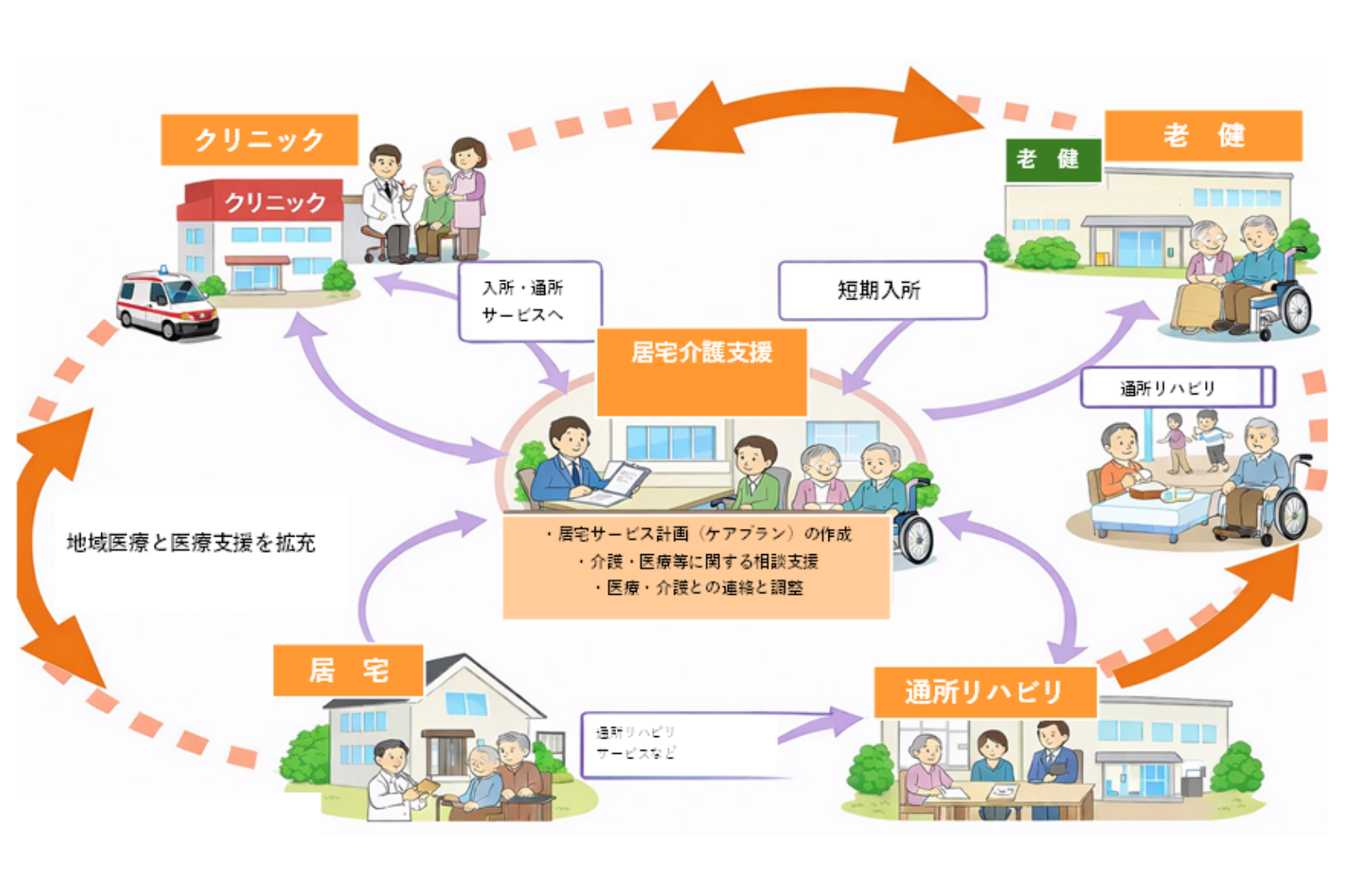 入所から短期入所になり、自宅から通える通所への移行ができることが特徴です。自宅からでもリハビリ等の支援を行うことが叶います。
